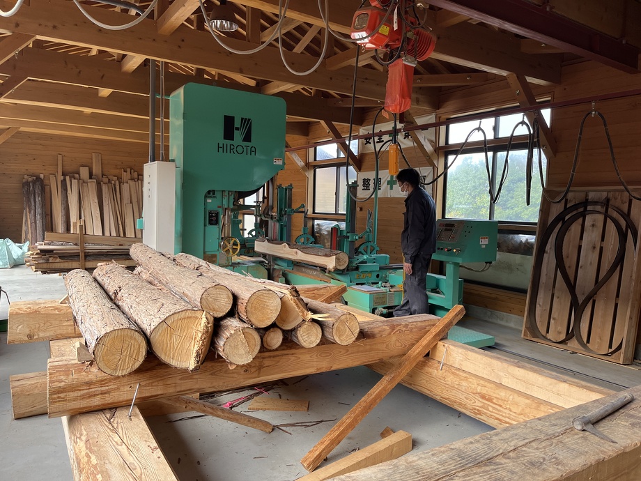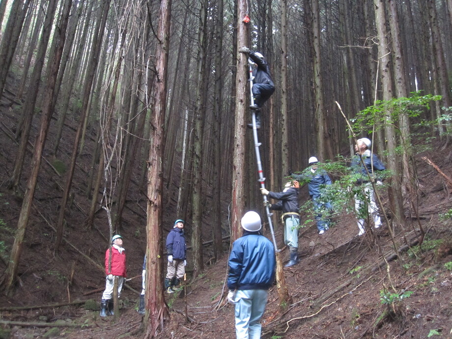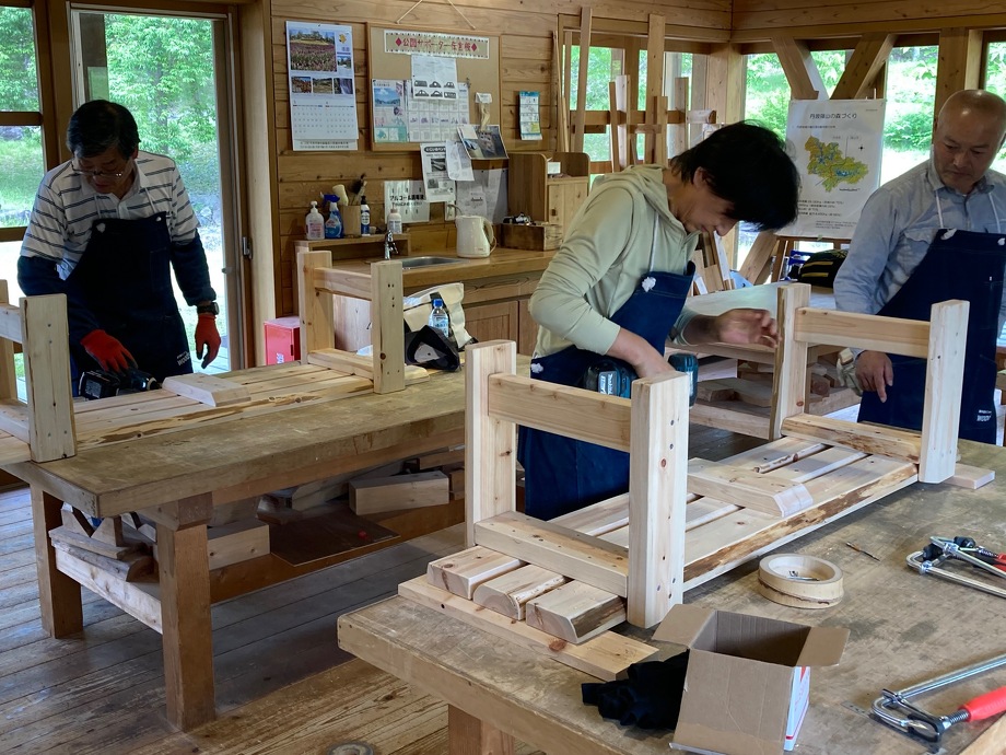 公園ではスギやヒノキの森から間伐材を切り出しています。森林活動センターでは間伐したスギやヒノキの製材を行い、木工教室やクラフトと体験などに使うために木材を加工しています。
