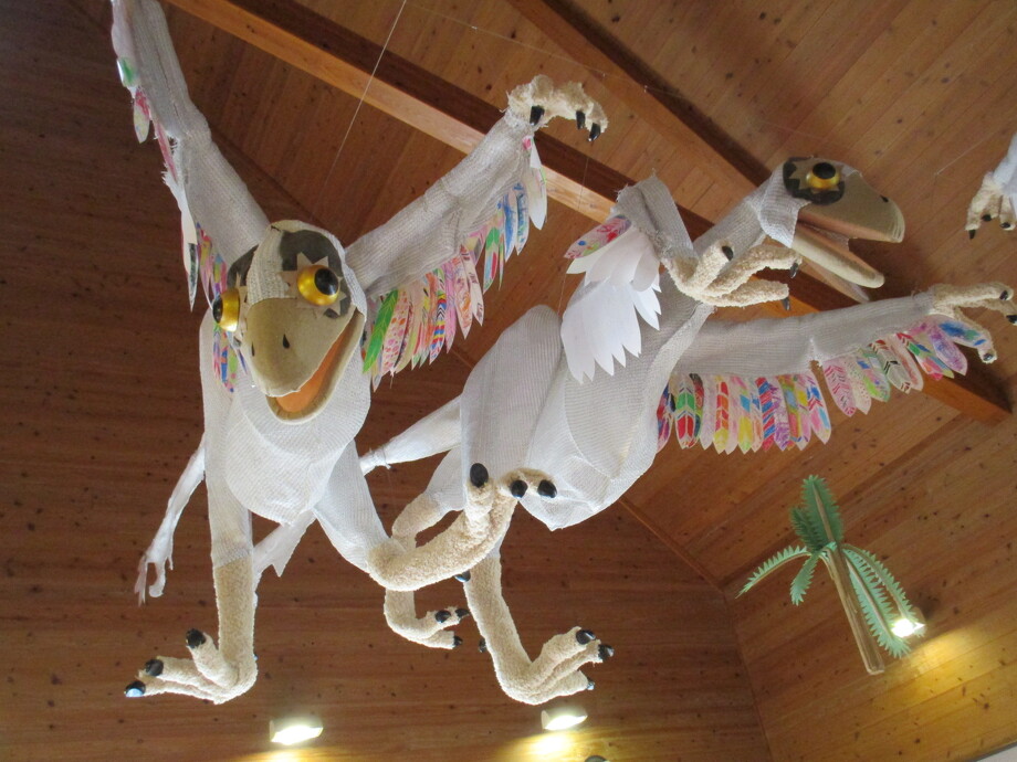 公園内には公園から発見された恐竜化石をモチーフにしたオブジェ、動く恐竜模型、恐竜や化石をモチーフにした遊具があります。