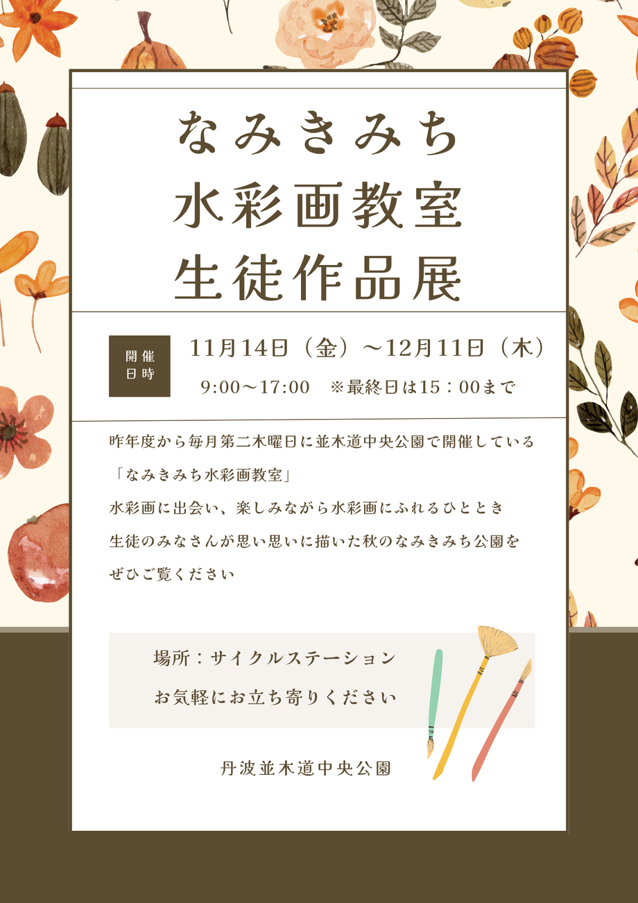 なみきみち水彩画教室生徒作品展(サイクルステーションにて11/14~12月11日まで開催 ※最終日は15時まで)