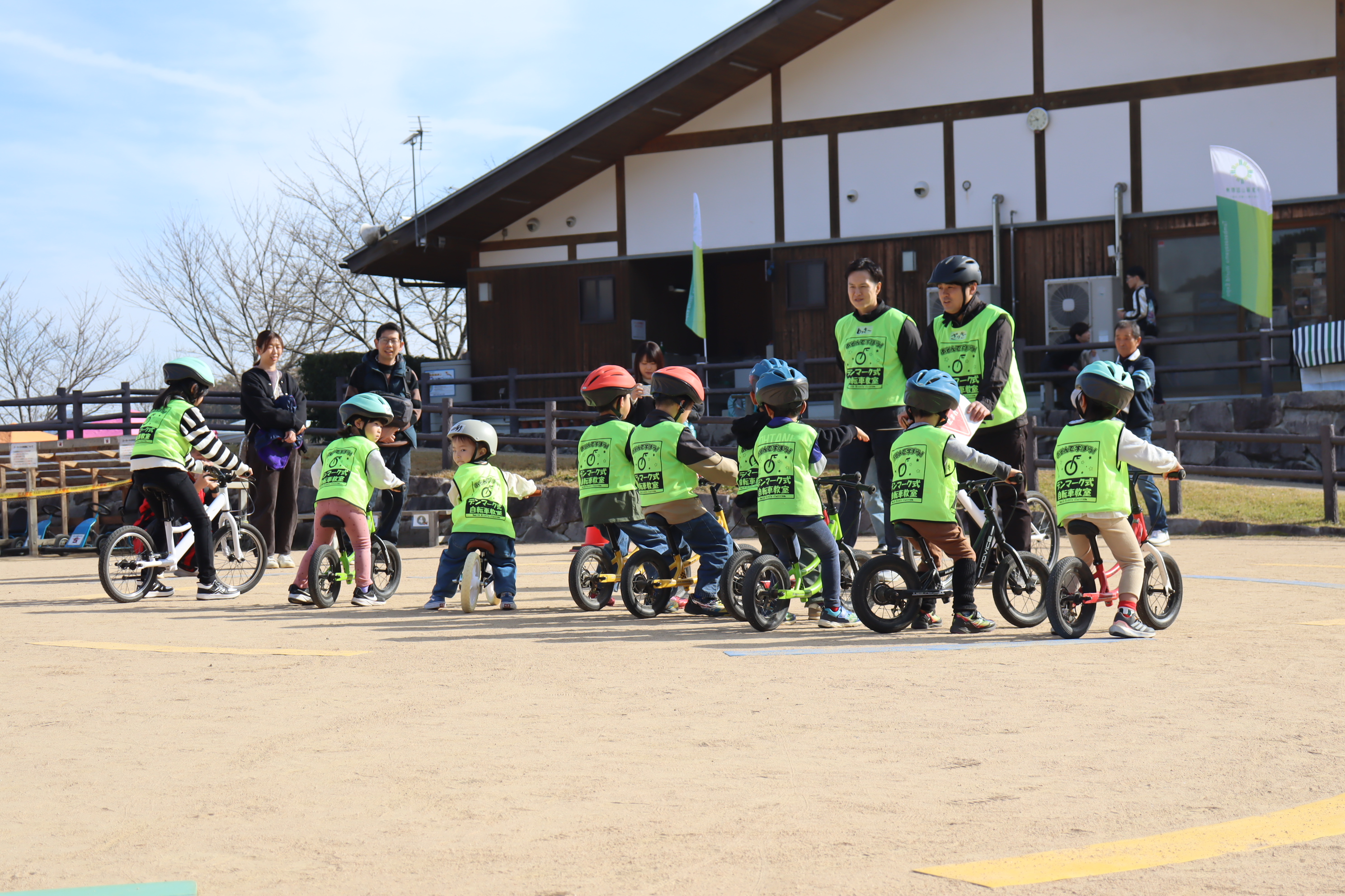 - 遊びながら自転車のバランス感覚や交通ルール、空間認識能力や協調性などが学べる自転車教室です。